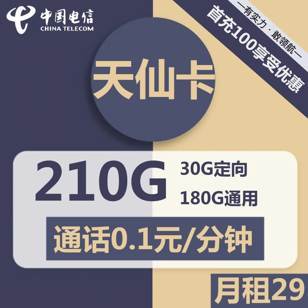 电信宛若卡29元180G通用+30G定向+通话0.1元/分钟