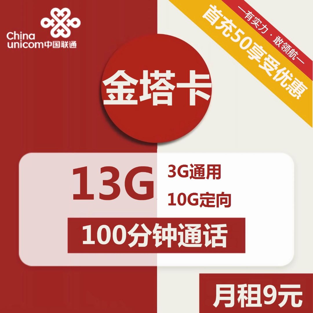联通金塔卡9元3G通用+10G定向+100分钟通话 套餐优惠内容及注意事项 原套餐:19元月租包3G通用流量+10G定向+100分 …