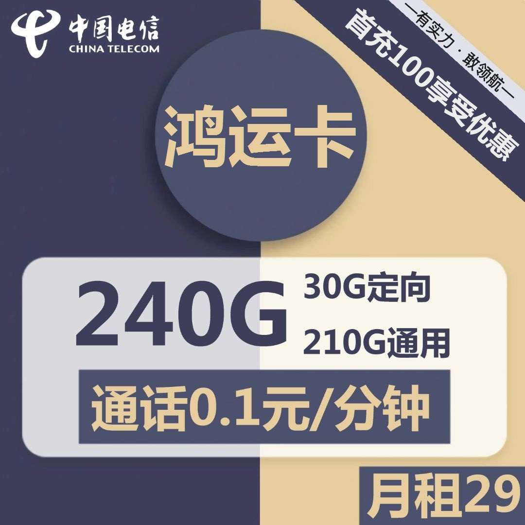 电信鸿运卡怎么样?接下来就由我来给大家介绍一下吧!电信鸿运卡是中国电信推出的一张大流量卡,仅需29元就可享受,210G超大通用流量 …