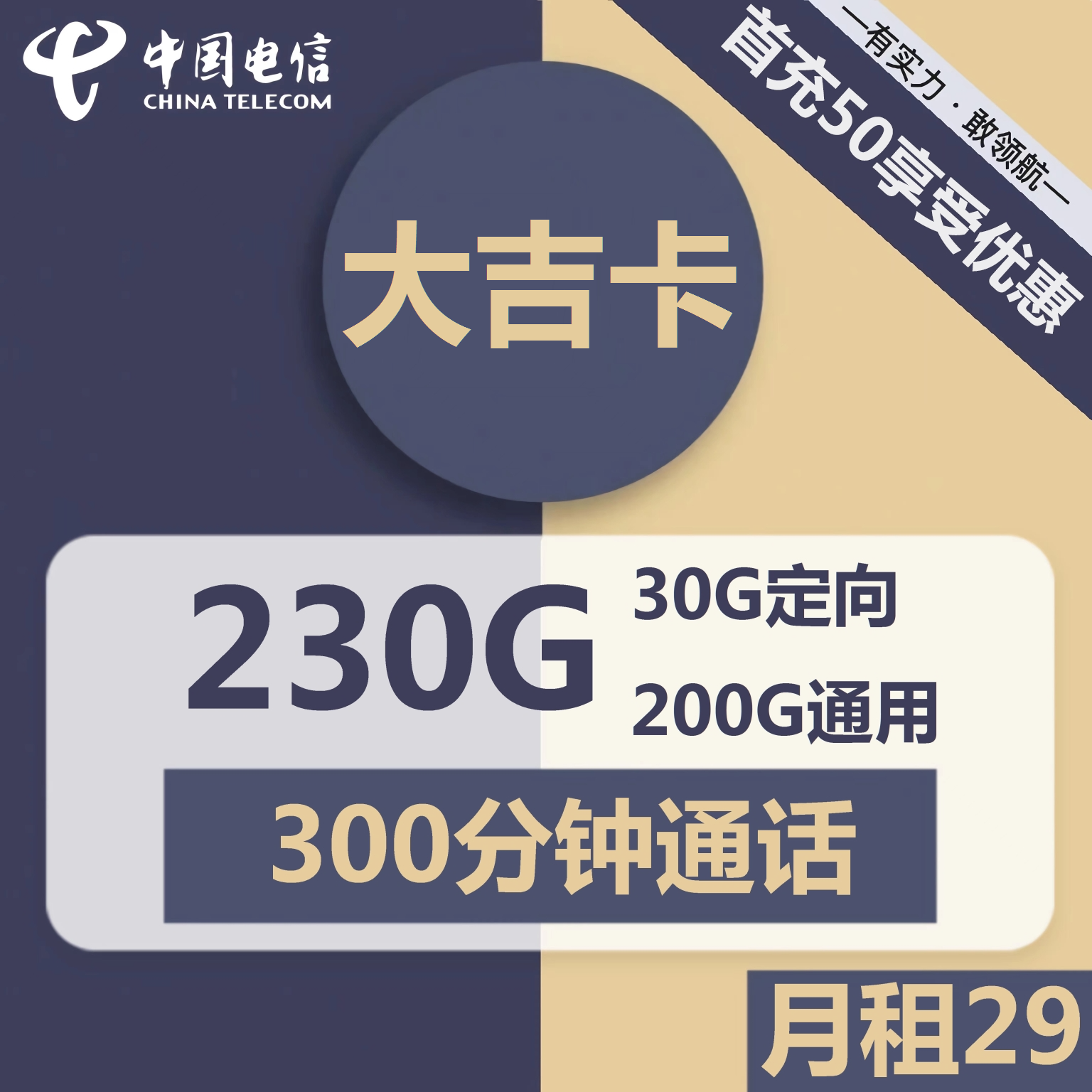 电信大吉卡怎么样?接下来就由我来给大家介绍一下吧!电信大吉卡是中国电信推出的一张大流量卡,仅需29元就可享受,200G超大通用流量 …