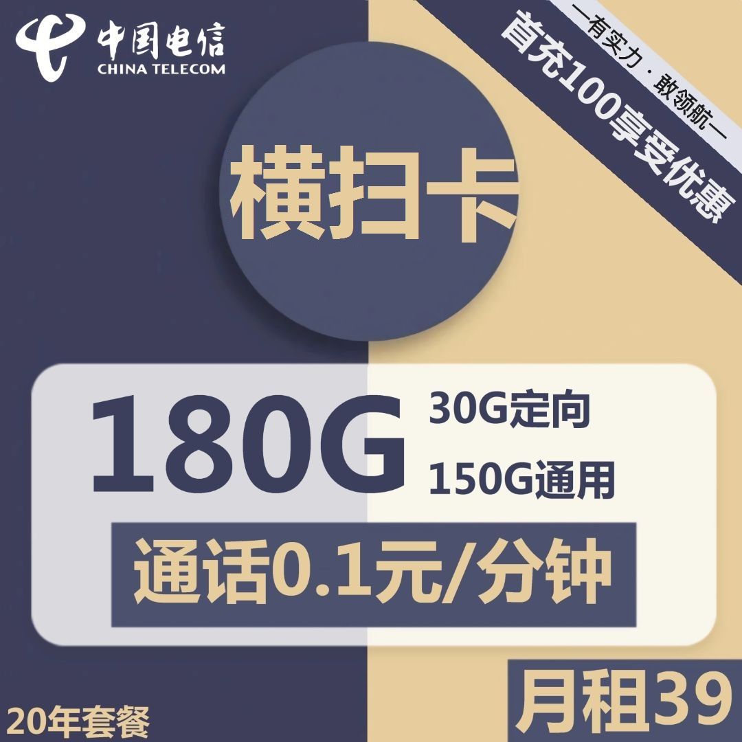 电信横扫卡套餐介绍 产品标题 电信横扫卡39元包150G通用+30G定向+通话0.1元/分钟(有效期20年) 套餐归属 山东 配送 …