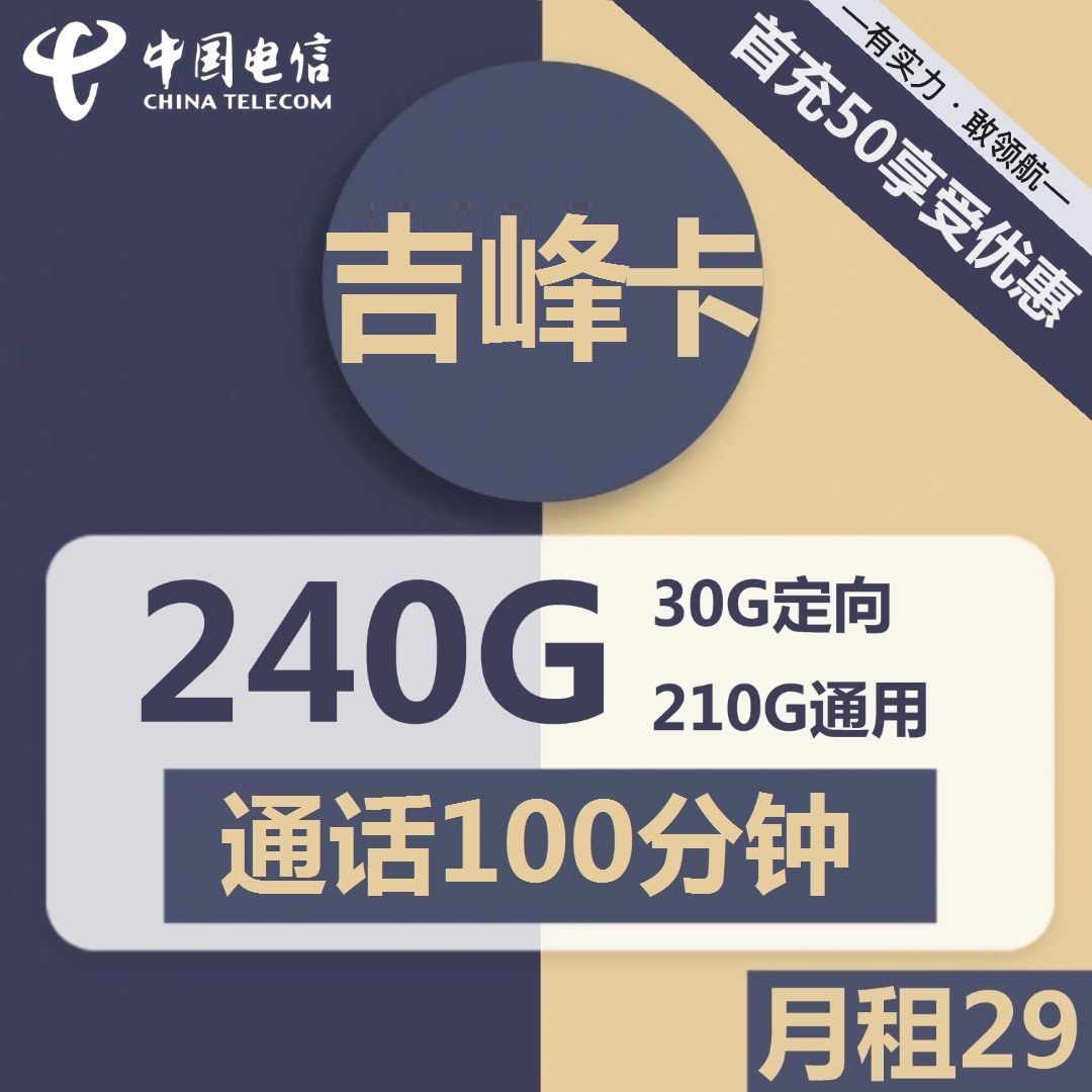 电信吉峰卡29元210G通用+30G定向+100分钟通话