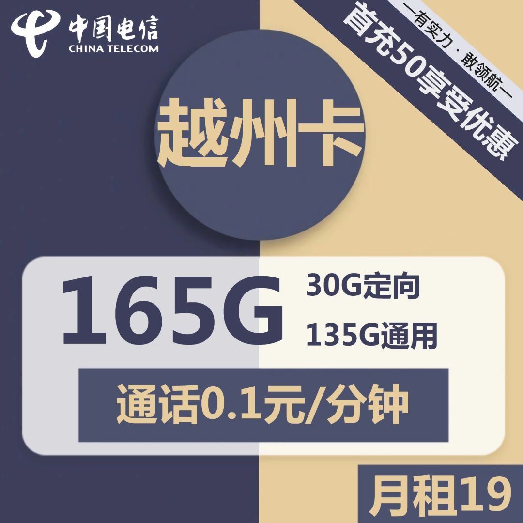 电信越州卡19元135G通用+30G定向+通话0.1元/分钟 套餐构成 原资费29元含30G定向流量:激活过程中强冲50元话费,可 …