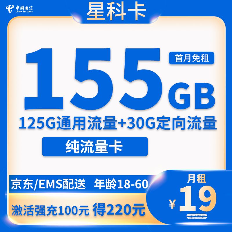 电信星科卡19元155G纯流量卡不可接电话和短信(可收) 资费介绍 原套餐29元包30GB定向流量流量:5元/G,不可发送短信,不 …