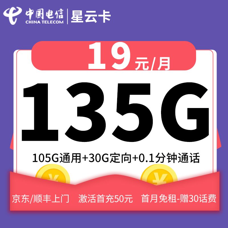 电信成荫卡19元包125G通用+30G定向 套餐构成 原套餐29月租包30定向流量19元月租激活过程中任选充值50元话费,享受以下 …