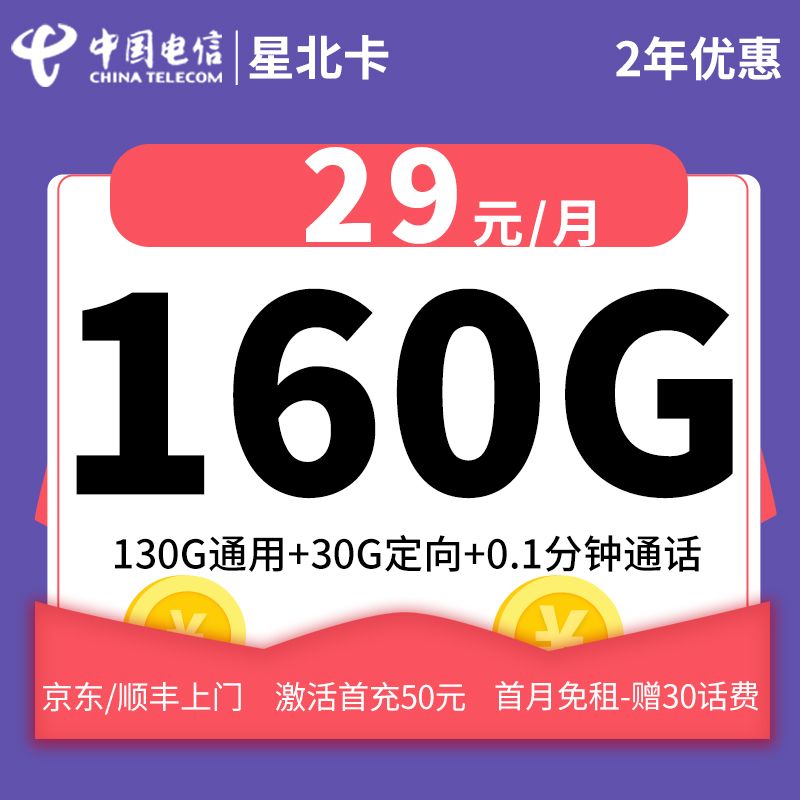 中国电信倾城卡首月免月租长期流量畅享180G全国流量无语音通话功能首月流量通话按天折算到账每月仅需29元 套餐优惠 原套餐39元/ …