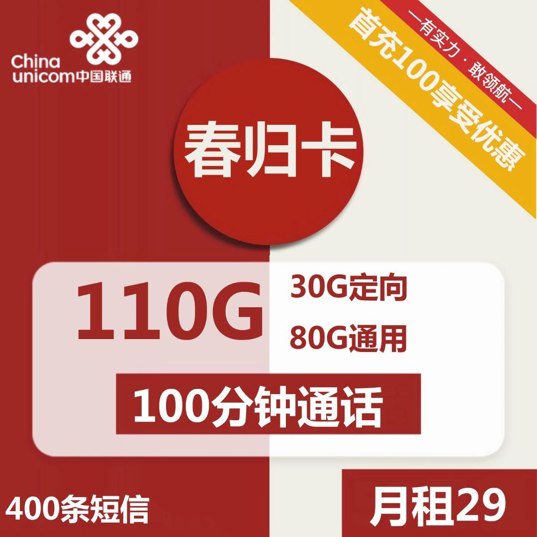 联通春归卡29元80G通用+30G定向+100分钟通话 基础套餐 29元原套餐39元/月15G通用 (4年优惠) 优惠内容 1、添 …