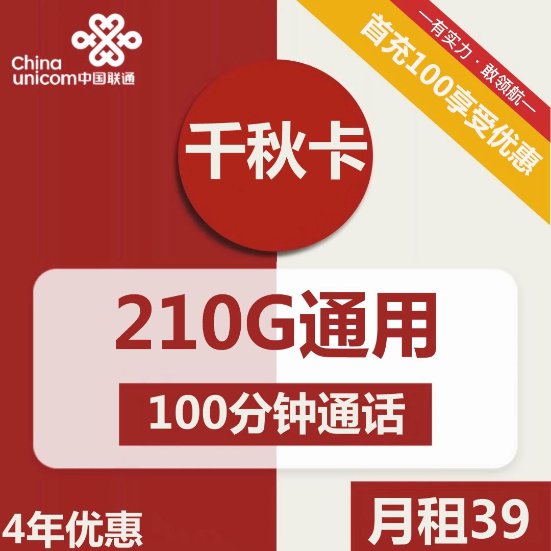 联通千秋卡39元210G通用+100分钟通话 套餐优惠内容及注意事项 原套餐29元50m通用流量+100分钟全国通话套外通话0.1 …