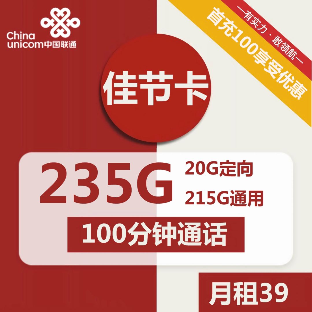 联通佳节卡39月租215G全国通用流量100分钟全国通话 套餐优惠内容及注意事项 原套餐为59元15通用+20G定向流量+100分 …