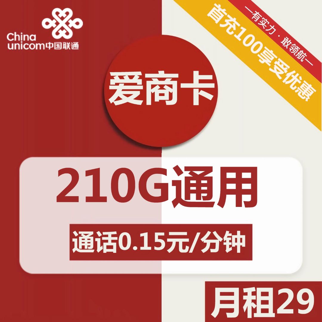 联通爱商卡29元包210G通用+通话0.15元/分钟 套餐优惠内容及注意事项 原套餐59元10G通用流量套外通话0.15元/分钟、 …